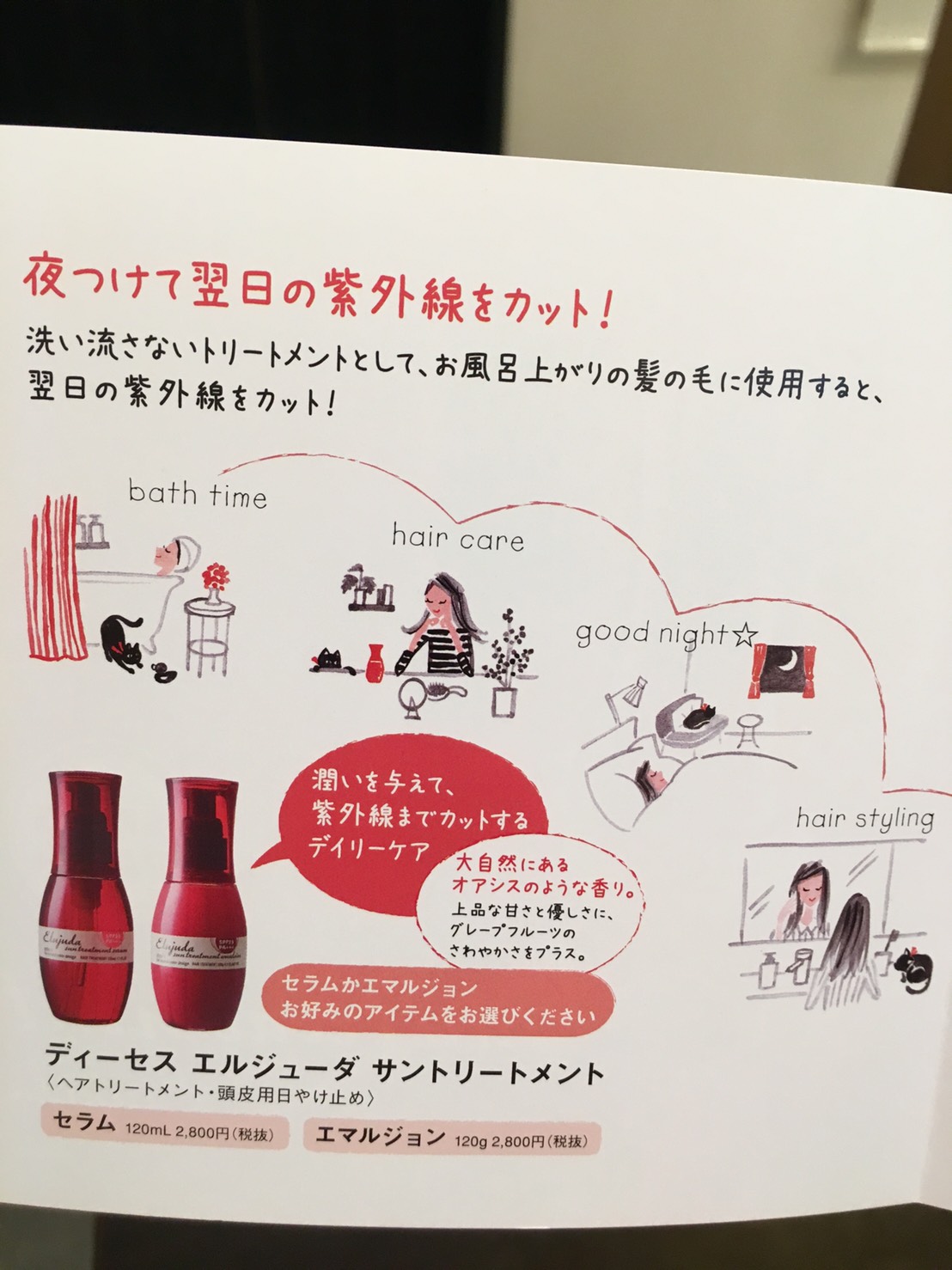 洗い流さないトリートメントなので紫外線をカットしつつ